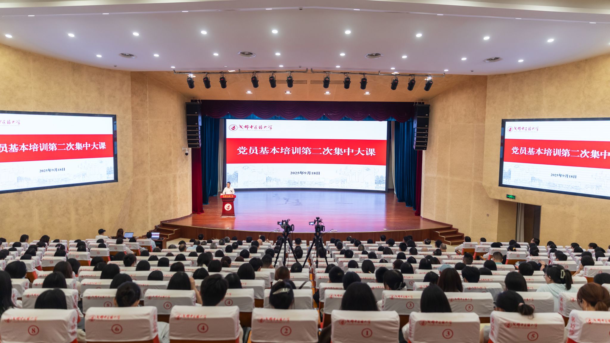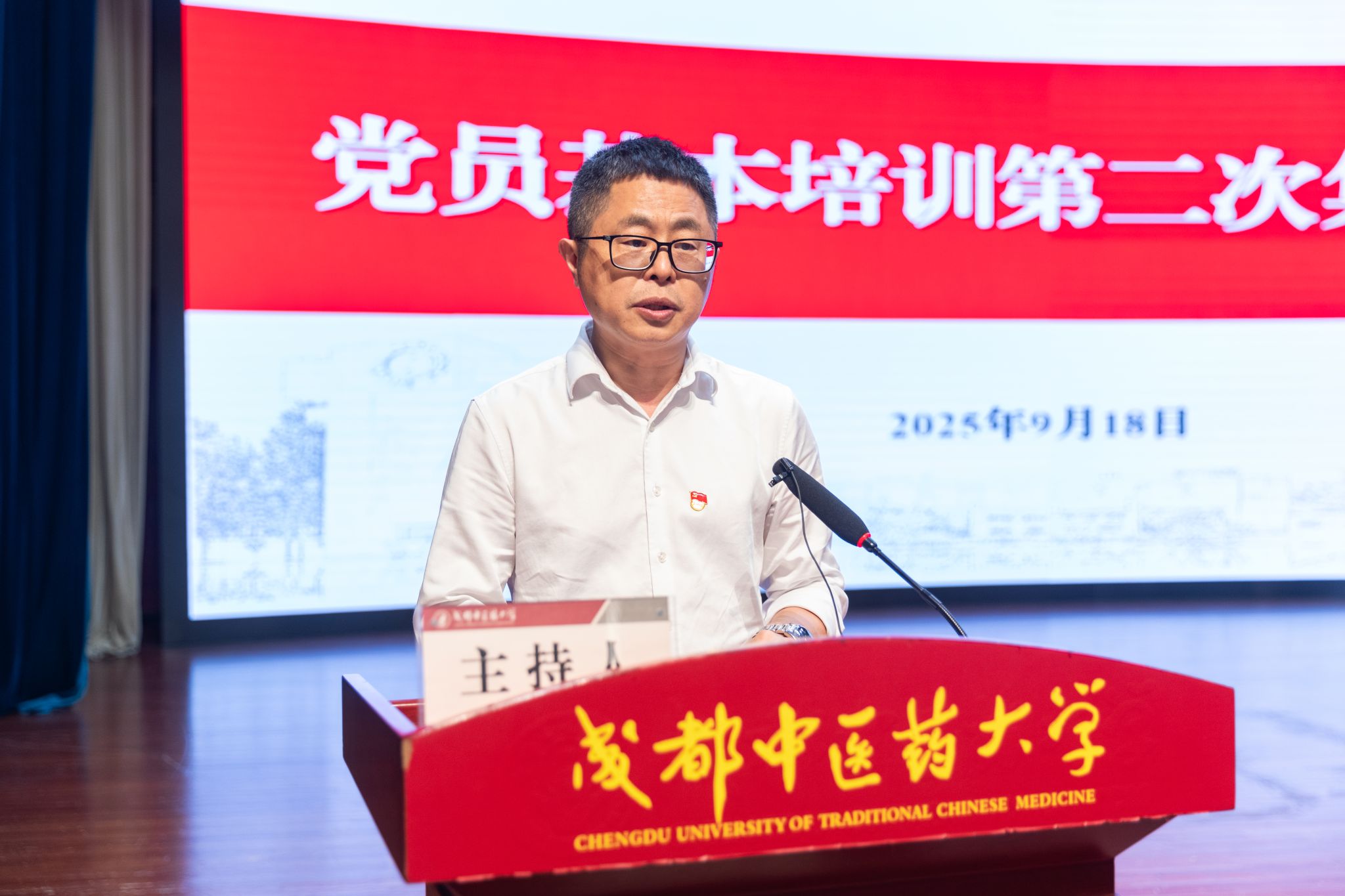 学校在百会堂设立主会场,5000余名师生党员分别在温江校区、十二桥校区及各附属医院48个会场,通过线上线下相结合的方式参加培训。学校党委书记张泽钧主持本次培训。