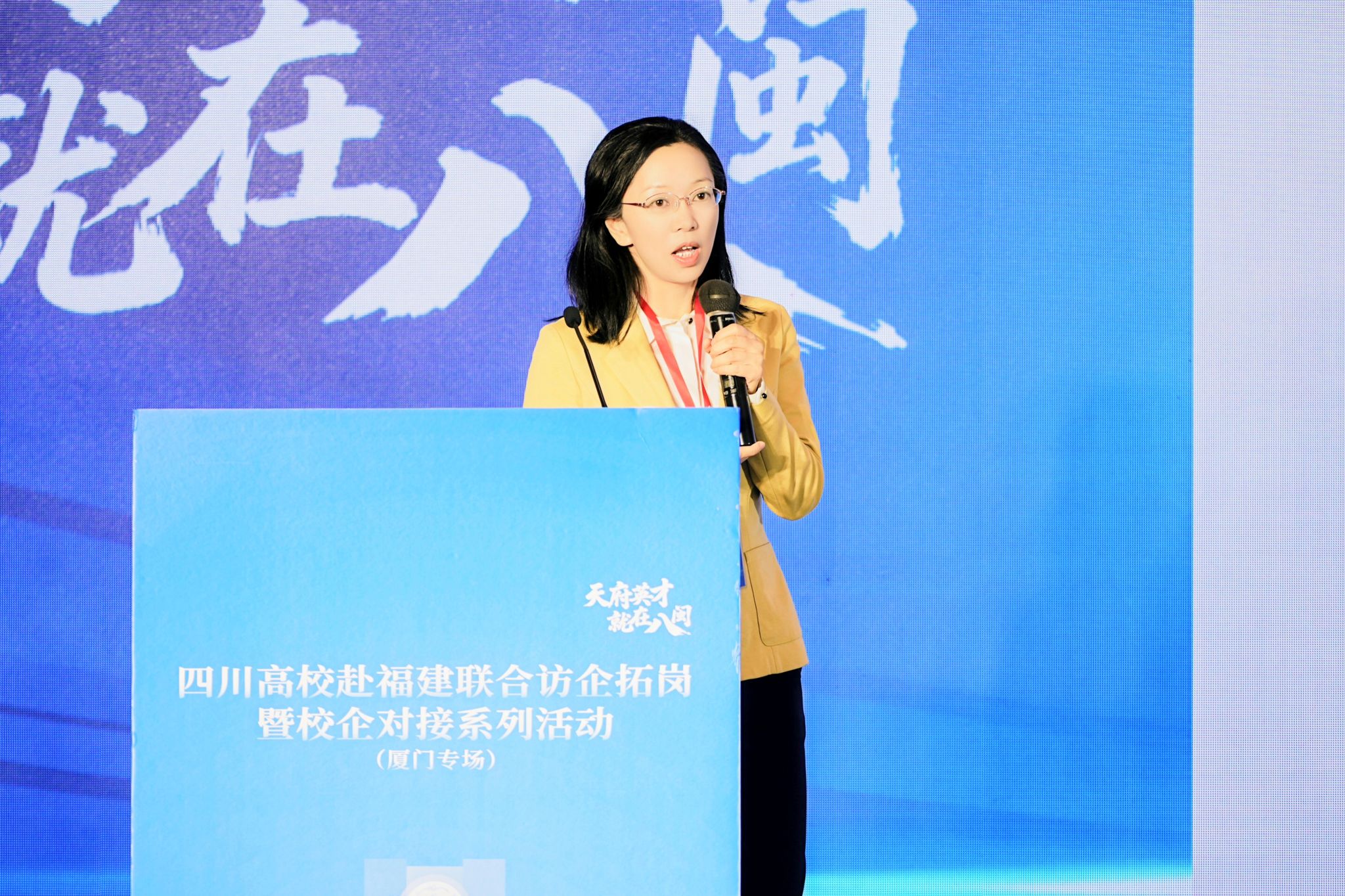 10月20日,厦门专场推介会举行,四川省40所高校及厦门市60余家企业代表到场参会。作为四川省3所推介高校之一,杨静在大会作学校推介发言,她系统介绍了Beat365官网厚重的办学历史、学科专业人才优势、国家级教学科研临床平台建设、人才培养成效、就业育人等情况,全面呈现了学校的教学、科研、医疗、人才、文化、服务社会等状况及合作愿景,希望此次来闽与福建医药健康领域相关单位深化合作,并邀请福建省用人单位来校选才,助力健康中国与中医药事业高质量发展,获得在场用人单位高度关注。
