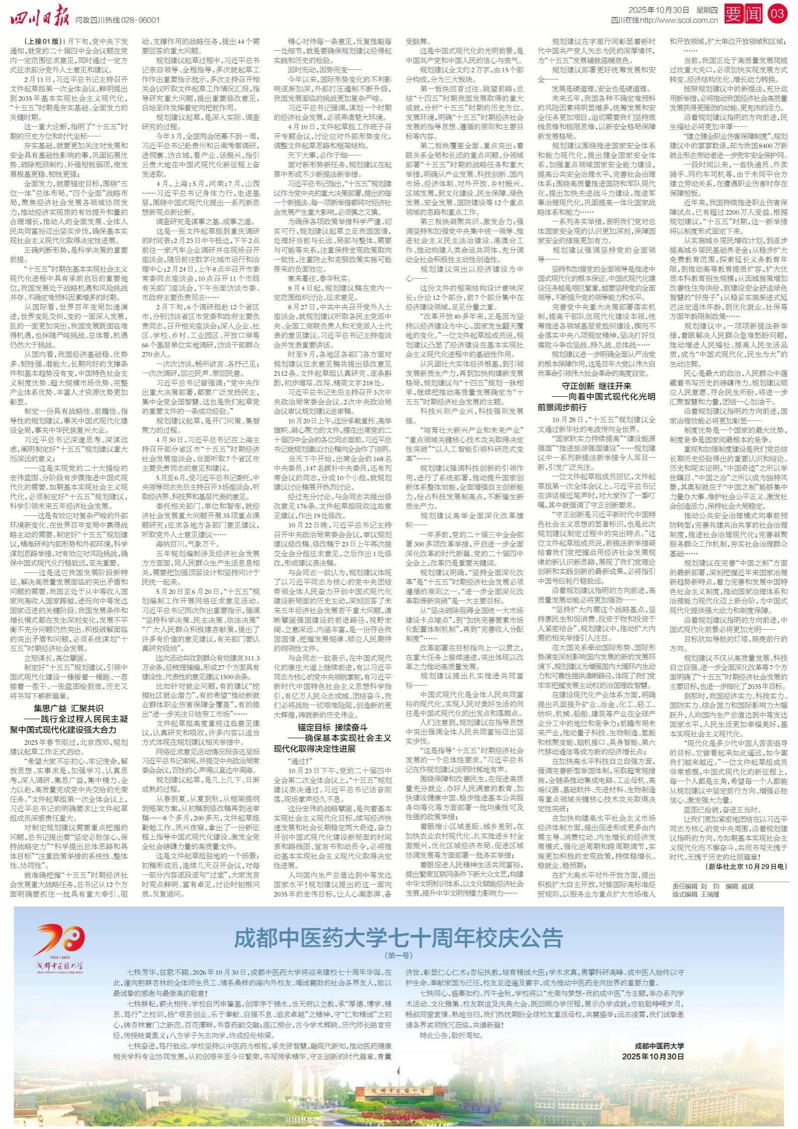 【校庆专题】《四川日报》:Beat365中文官方网站70周年校庆公告(第一号) 发布时间:2025-11-01 20:40:22 浏览次数: 次 【字体:小 大】 【打印正文】 上一条:【校庆专题】《中国中医药报》:Beat365中文官方网站70周年校庆公告(第一号) 下一条:【校庆专题】人民网:Beat365中文官方网站七十周年校庆公告 (第一号)