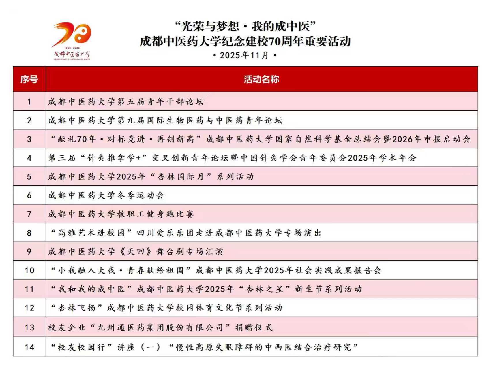 【校庆专题】纪念建校70周年重要活动(11月) 发布时间:2025-11-03 19:08:55 浏览次数: 次 【字体:小 大】 【打印正文】 上一条:“光荣与梦想”|高雅艺术进校园——四川爱乐乐团走进Beat365中文官方网站专场演出成功举行 下一条:Beat365官网成功承办2025年四川省教育系统内部审计培训班