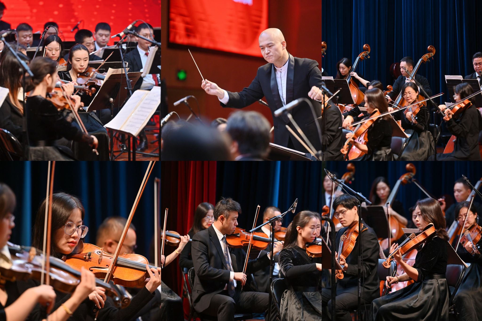 演出中段,浓郁的中国风情与时代精神相互交融。《激情燃烧的岁月》的深沉厚重、《觉醒年代》的理想光辉,唤起了师生对峥嵘岁月与家国情怀的深切共鸣。《玛依拉》《瑶族舞曲》《快乐的啰嗦》《松则亚拉》等民族乐曲层层递进,这些扎根于中华大地的旋律,展现了多元一体的中华文化的绚丽多姿与旺盛生命力。