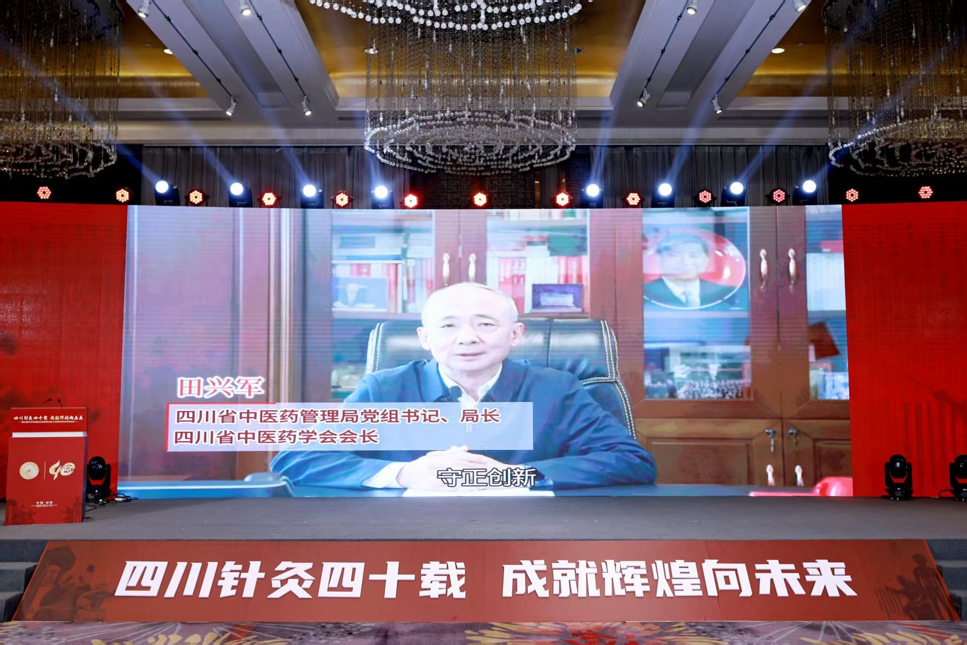 大会开幕式上,四川省中医药管理局党组书记、局长田兴军发表视频讲话。他指出,近年来四川积极完善中医药传承创新发展机制,推动中医药事业、产业、文化“三位一体”高质量发展取得新成效。他希望四川省针灸学会及全省针灸工作者抢抓国家中医药综合改革示范区与中医药强省建设的战略机遇,充分发挥针灸“简、便、验、廉”的特色优势,在治未病、重大疾病治疗和疾病康复中持续发挥突出作用,切实把中医针灸这一民族瑰宝继承好、发展好、利用好。