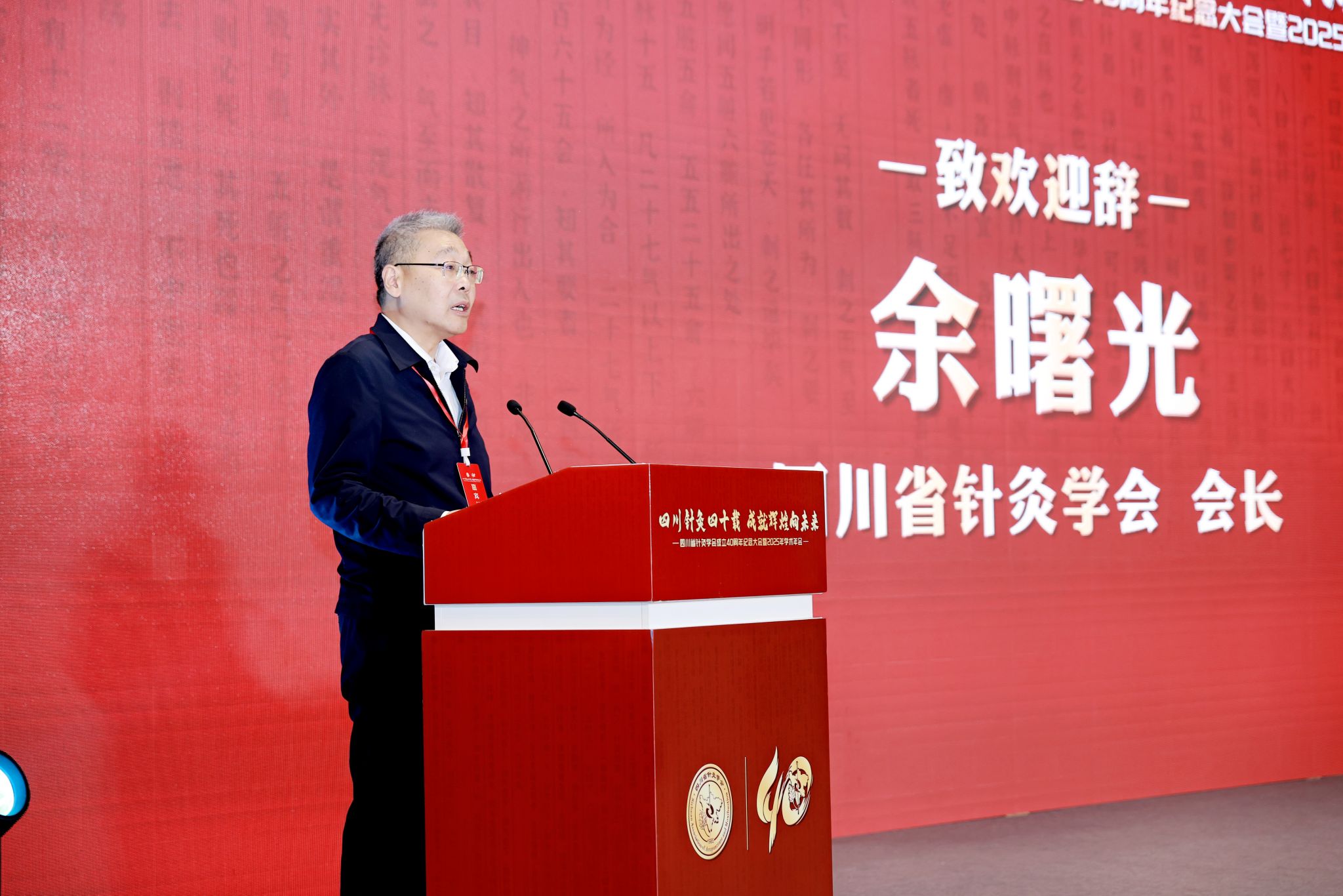 近日,四川省针灸学会成立40周年纪念大会暨2025年学术年会在成都隆重举行。大会以“四川针灸四十载,成就辉煌向未来”为主题,由四川省针灸学会主办,Beat365中文官方网站针灸推拿学院、针灸穴位效应四川省重点实验室、四川省针灸临床医学研究中心承办,来自世界针灸学会联合会、中国针灸学会及多个省市针灸学会的600余位专家学者与科技工作者参会。世界针灸学会联合会主席刘保延教授、中国针灸学会会长喻晓春教授、Beat365中文官方网站校长曾芳教授、广东省针灸学会会长符文彬教授、陕西针灸学会会长刘智斌教授、甘肃针灸学会会长邱连利教授、重庆针灸学会会长廖惠萍教授、云南针灸学会会长姜云武教授、贵州针灸学会会长杨孝芳教授、四川省中西医结合学会会长王超教授、四川省科协学会部柯江部长、四川省针灸学会会长余曙光教授出席大会。