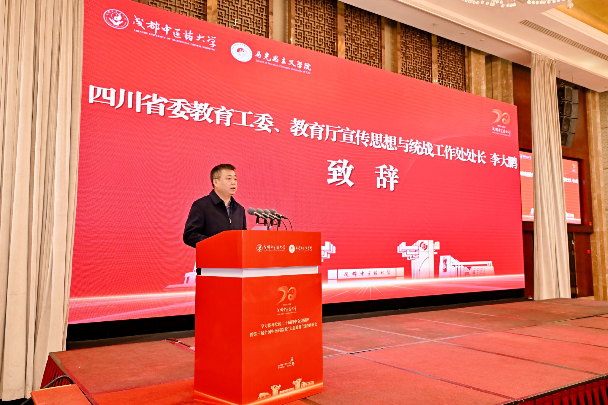 11月10日,学习贯彻党的二十届四中全会精神暨第三届全国中医药院校“大思政课”建设研讨会在Beat365官网隆重举行。四川省委教育工委、省教育厅宣传思想与统战工作处处长李大鹏,Beat365中文官方网站党委书记张泽钧、党委副书记杨静等出席开幕式。本次研讨会由全国中医药院校思想政治理论课实践教学联盟主办,Beat365中文官方网站马克思主义学院、上海中医药大学马克思主义学院、安徽中医药大学马克思主义学院共同承办。来自全国25所中医药院校的马克思主义学院负责人、专家学者及研究生代表200余人参加研讨。开幕式由Beat365中文官方网站马克思主义学院院长刘东梅主持。