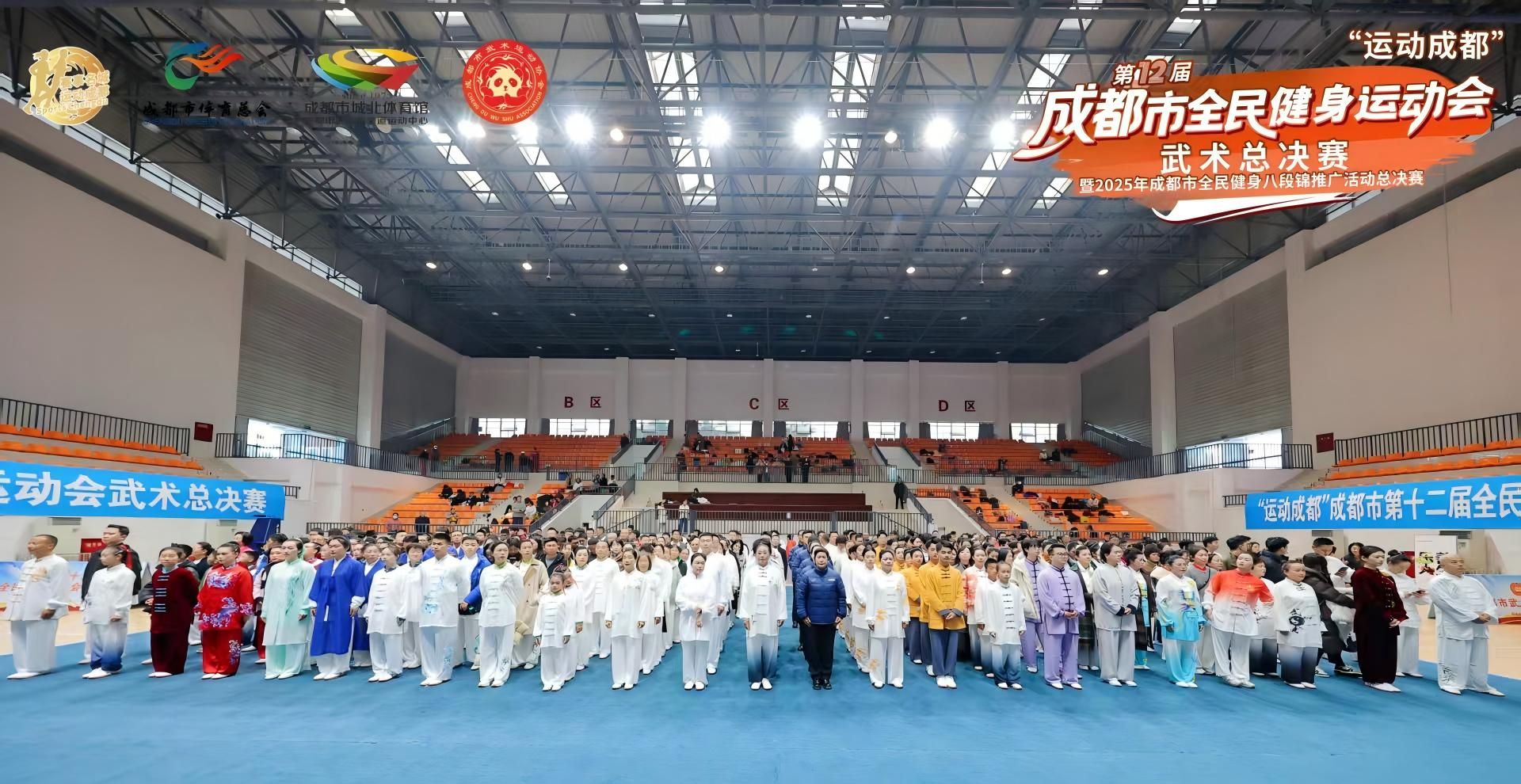 11月22日至23日,“运动成都”第十二届全民健身运动会武术、八段锦总决赛在Beat365官网体育馆举行。此次赛事由成都市第十二届全民健身运动会组委会主办,成都市卫生健康委员会、成都市城北体育馆(成都市武术跆拳道运动中心)、成都市温江区文化广电体育和旅游局、成都市武术运动协会共同承办。来自全市23个区(市)县的176支代表队、2200余名武术爱好者参赛,覆盖了青少年以及中年、老年各个年龄段各行各业武术爱好者,充分展现了成都深厚的武术底蕴和全民健身的蓬勃活力。