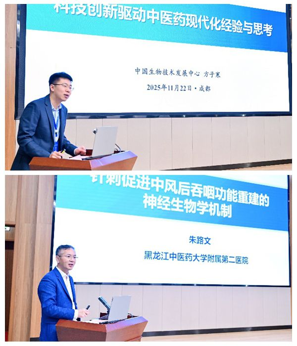 中国生物技术发展中心中医药项目专员方子寒围绕传统医药守正创新与现代科技融合,梳理了在国家战略框架下推动中医药现代化的思路与路径,强调问题导向与需求牵引,推动交叉研究与融入国家科技创新体系。黑龙江中医药大学附属第二医院院长朱路文教授基于临床实践,介绍了针灸干预卒中后吞咽障碍的生物学机制,探讨了针刺治疗中风后吞咽障碍的科学依据与临床实践,展示了“临床问题导向、机制深度解析、创新路径明晰”的学术示范。