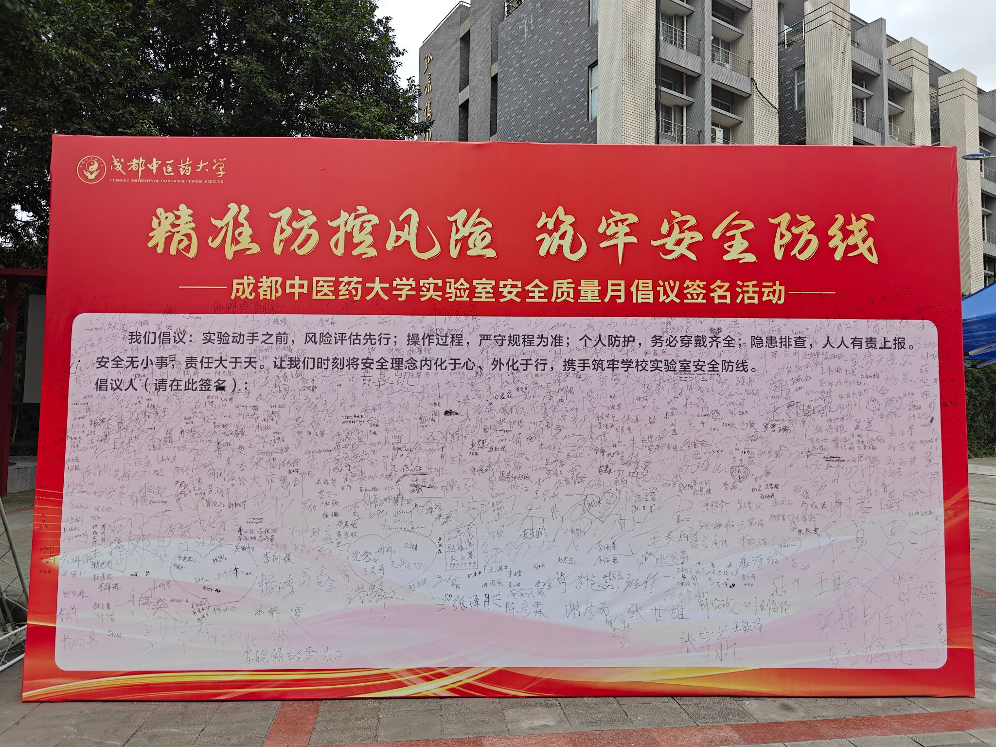 “实验室安全质量月倡议签名活动”同步进行。签名活动不仅是一种仪式,更是一次深刻的安全责任教育。它象征着安全责任从制度要求向个人承诺的转化,有力地推动了“我要安全、我会安全、我能安全”的主人翁意识在每一位实验参与者心中生根发芽,为构建全员参与、持续改进的实验室安全文化生态注入了强大的精神动力。