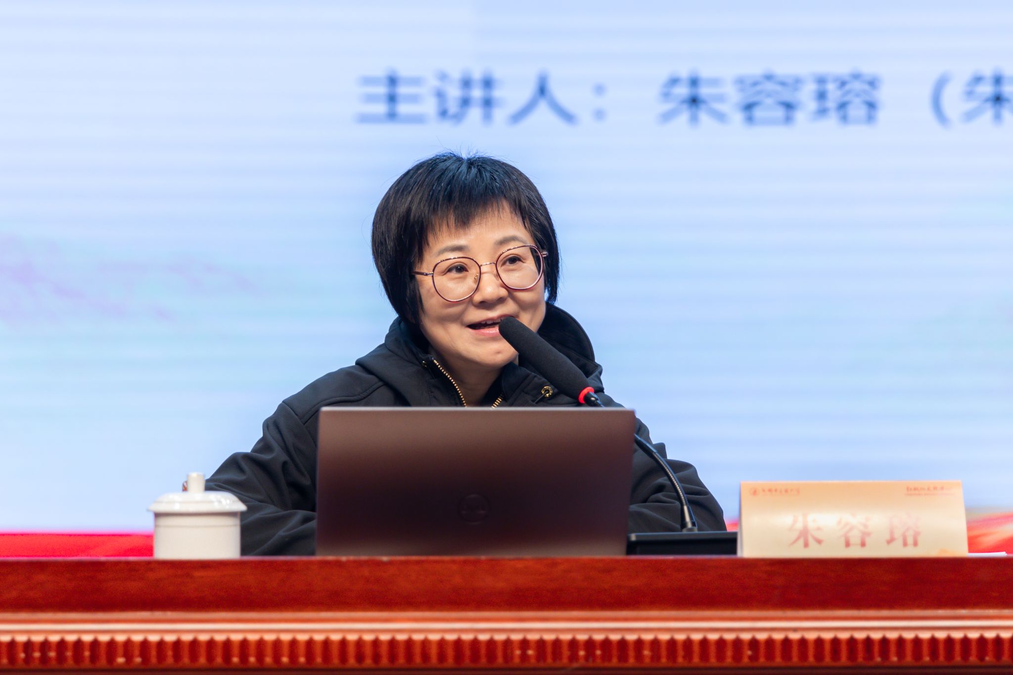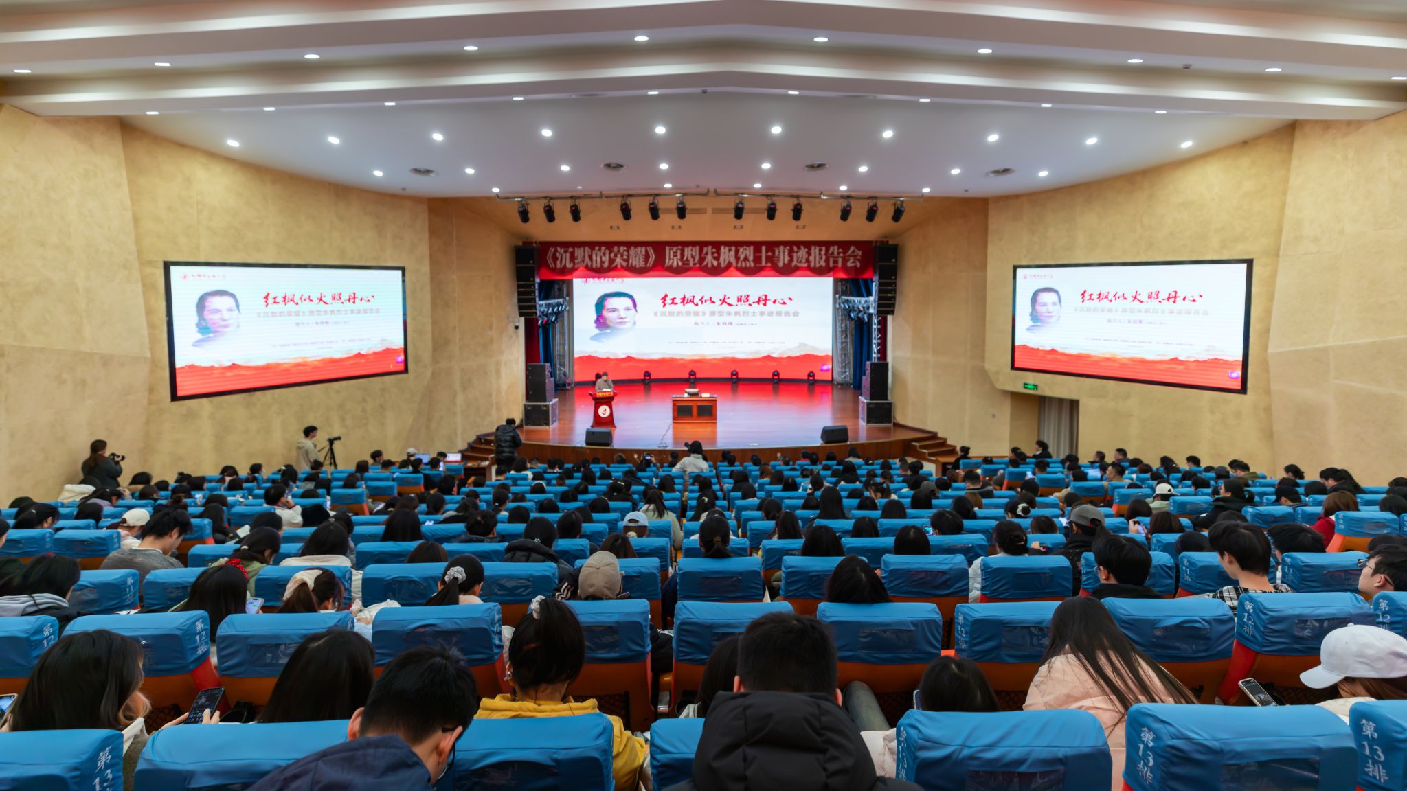 朱枫烈士孙女朱容瑢女士以《沉默的荣耀 永恒的信仰》为题,通过大量真实的档案与图片资料,将在场师生带入革命年代战火纷飞的历史场景中。报告讲述了朱枫烈士一步步坚定革命理想投身革命事业的真实历程,从其倾尽所有捐助革命工作,到扎根基层展开卧底工作,再到一件毛衣、一双袜子的细微处关爱战友,最后坚定执行上级任务,在被捕入狱后展现共产党人宁死不屈的革命精神,为青年学子展现了一个拥抱光明、信奉真理、忠贞坚定的共产主义战士形象。