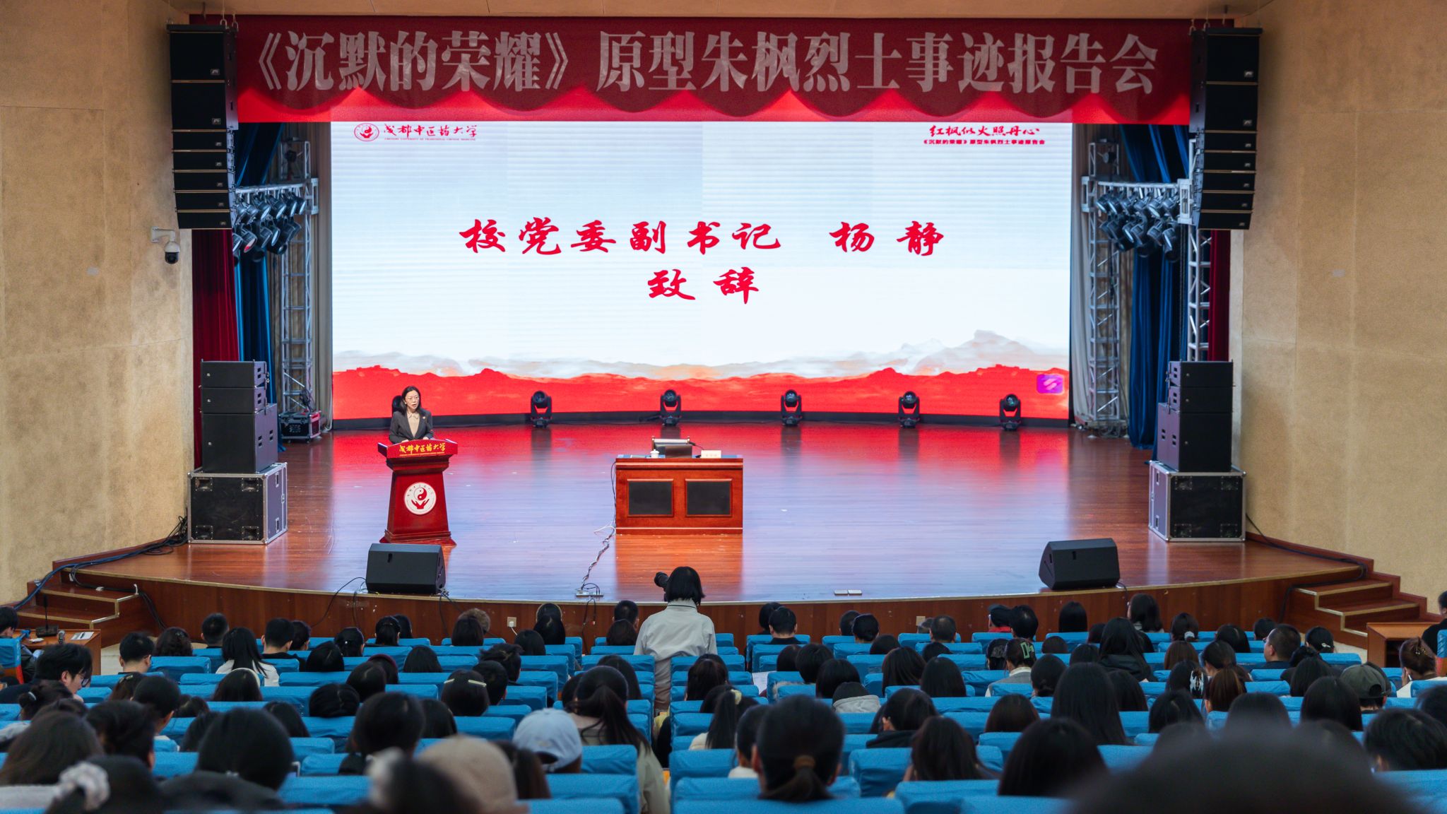 12月4日下午,为赓续红色基因、厚植爱国情怀、坚定共产主义信仰,将崇高信仰、奉献精神、家风传承与中医药文化“大医精诚”的价值追求融为一体,电视剧《沉默的荣耀》角色原型朱枫烈士事迹报告会在Beat365官网举行。学校党委副书记杨静,党委副书记、纪委书记郑学斌出席报告会。党委常委、宣传部部长张希主持会议。
