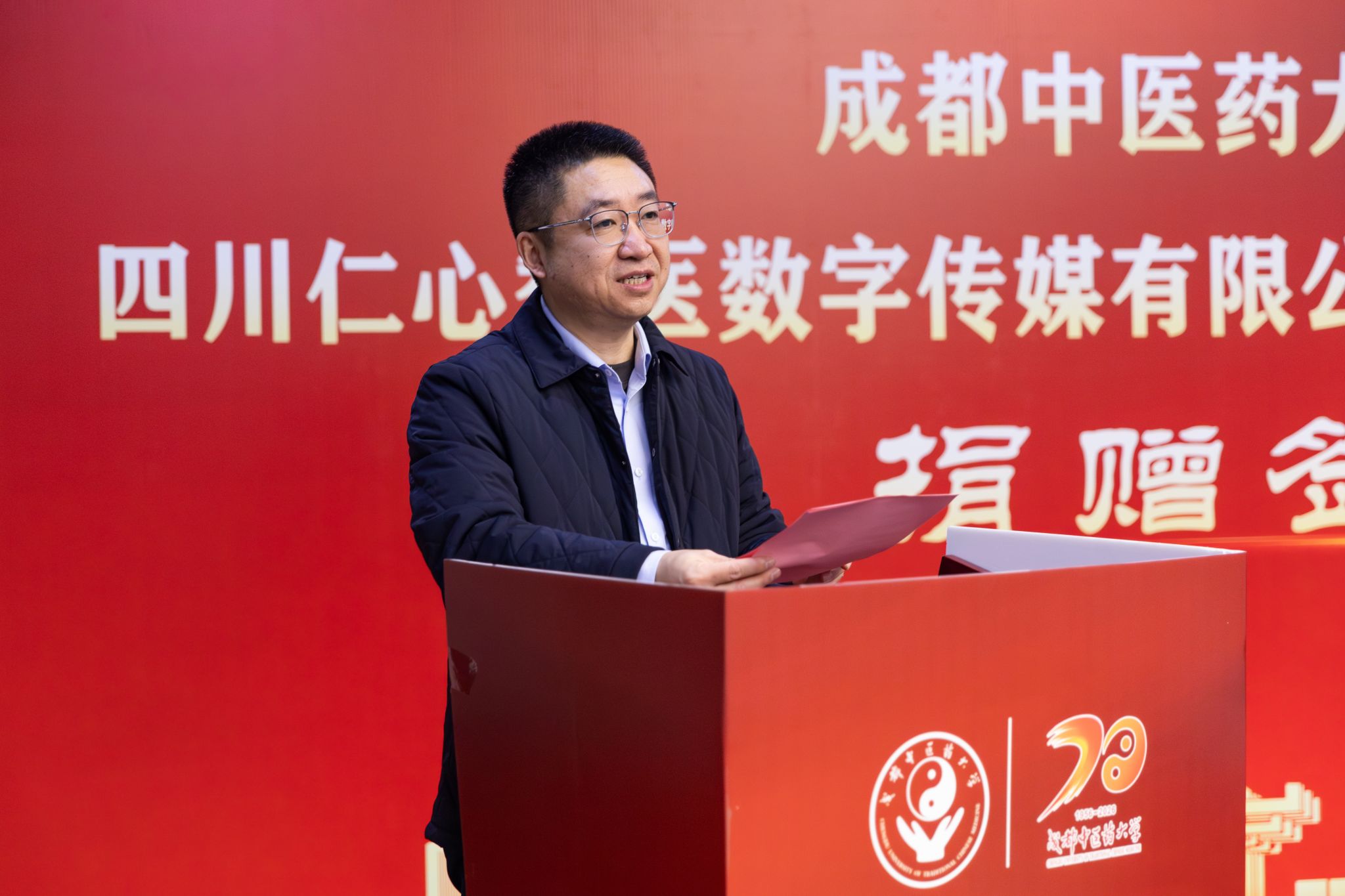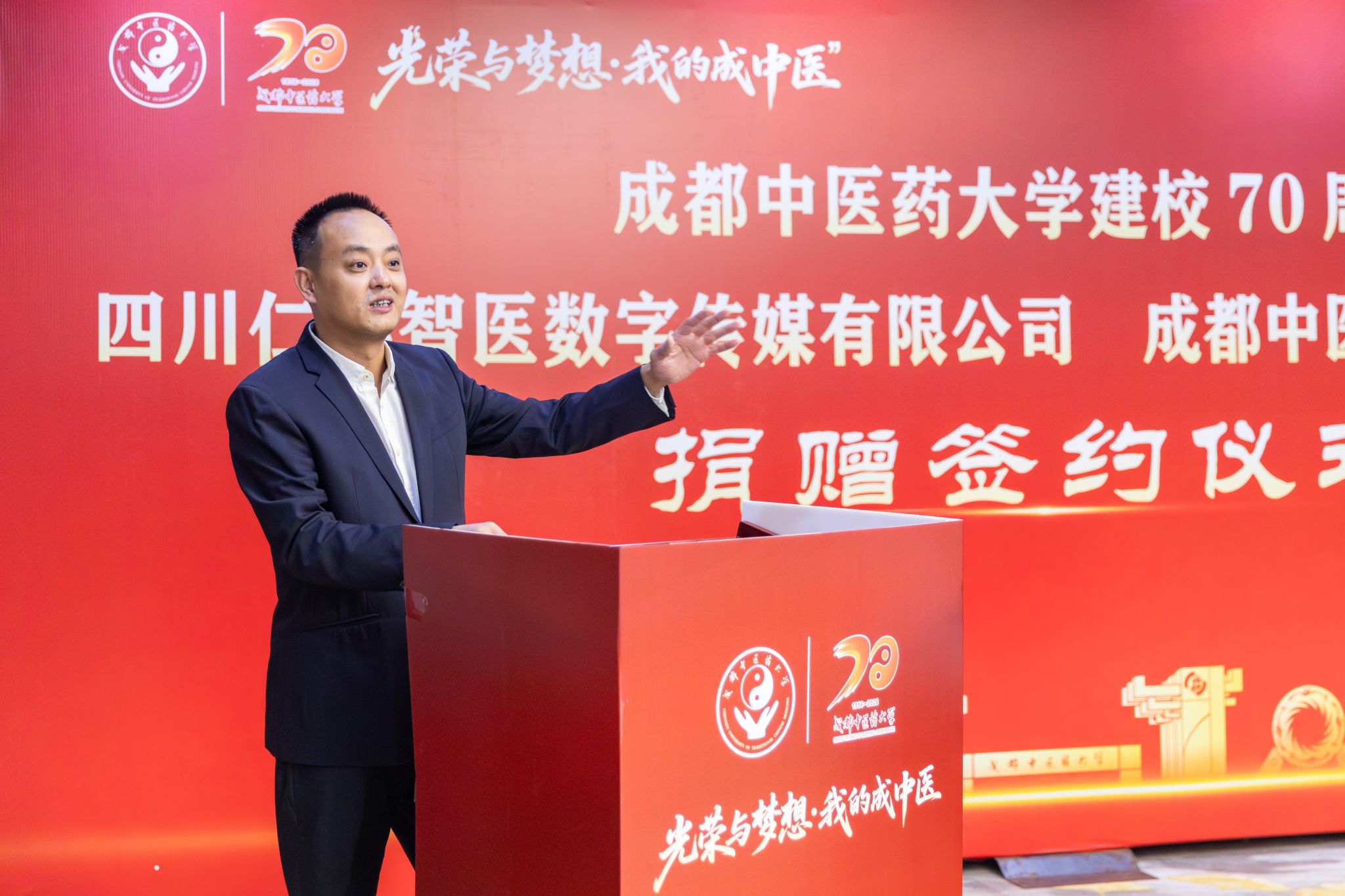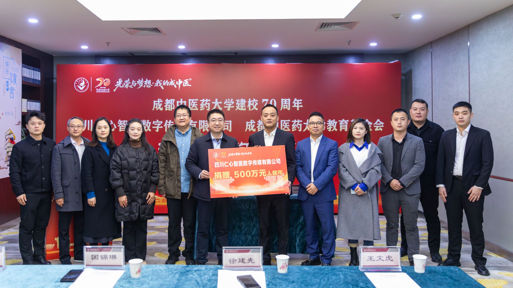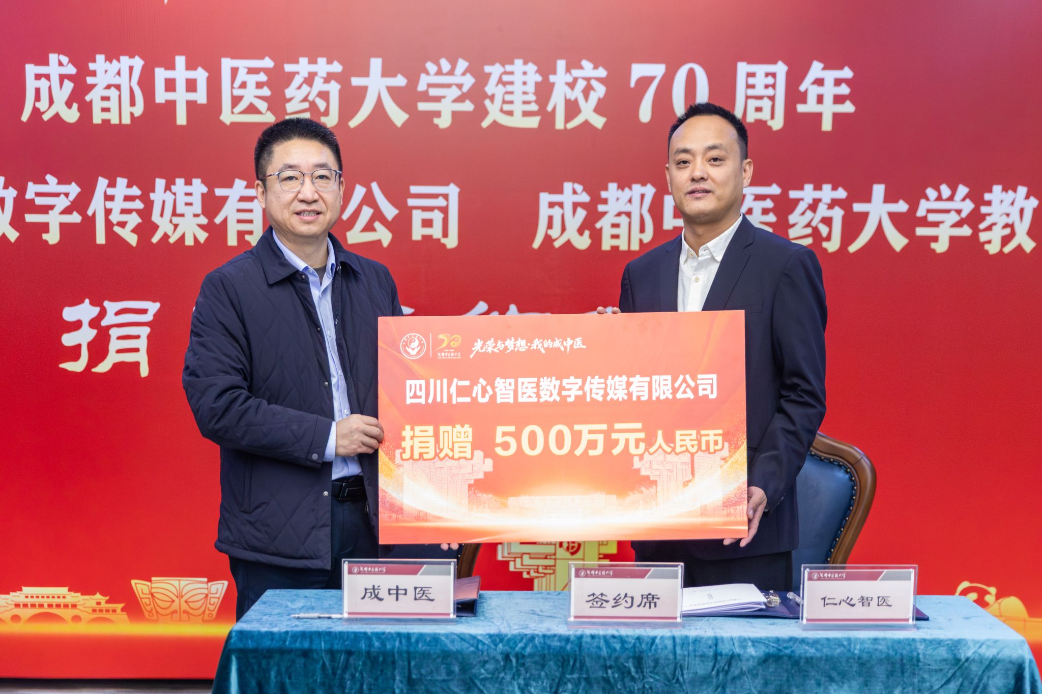 仪式现场,双方签订捐赠协议,企业负责人徐建先代表公司向学校递交捐赠支票。双方将以建校70周年纪念为契机,围绕中医药数字化传播、智慧医疗服务、人才联合培养等方向深化合作,推动中医药资源与现代信息技术融合,为“健康中国”建设贡献力量。