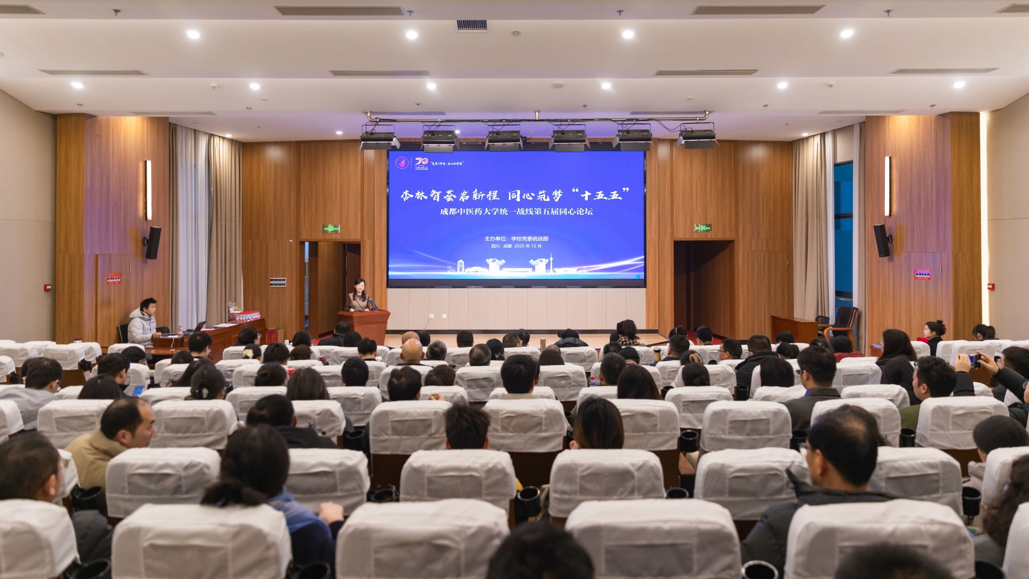12月30日,学校统一战线第五届“同心论坛”在弘景楼报告厅举行。论坛以“杏林智荟启新程,同心筑梦‘十五五’”为主题,学校党委书记张泽钧,党委副书记、校长曾芳,党委副书记杨静出席论坛。论坛由党委常委、统战部部长赵凌主持。