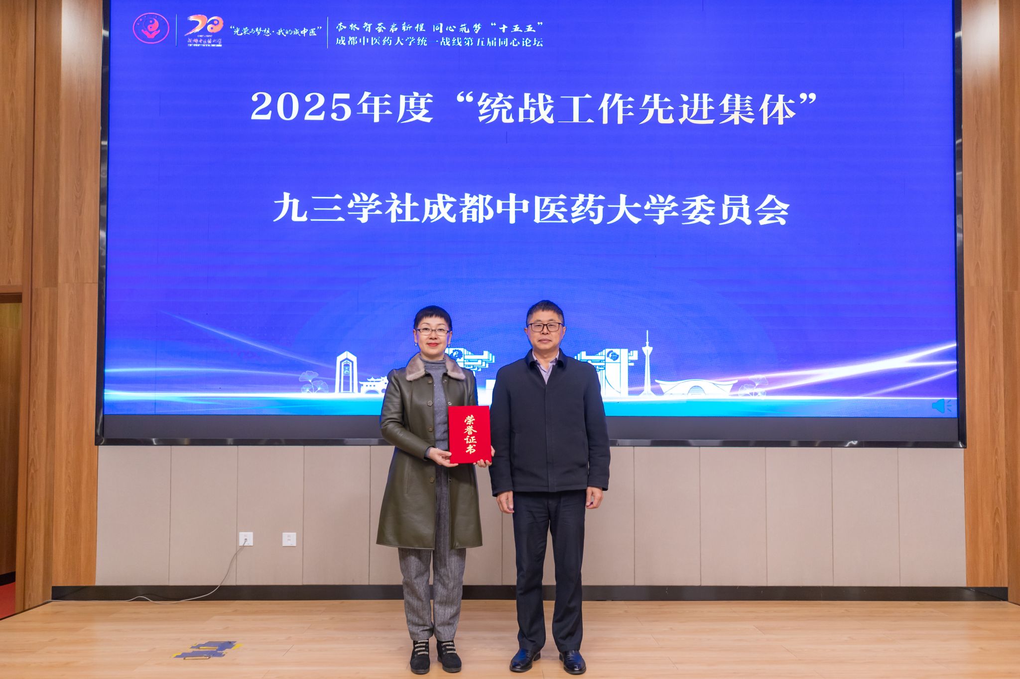 杨静在致辞中表示,“十四五”以来,学校统战工作始终坚持党的全面领导,强化思想引领,服务中心大局,谱写了新时代学校统战工作高质量发展的生动篇章。下一步,学校将持续深化建设“成中医”特色“大统战”工作格局,着力实施统一战线“英才计划”,精心打造统一战线“代表人士工作室”品牌平台,进一步集众智、聚合力,为学校“十五五”事业发展凝聚更加广泛的共识与团结奋进的力量。