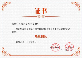 近日,在成都市血液中心联合川观新闻开展的第三季“四川高校公益献血事迹云展播”暨首届热血青年代言人计划活动中,Beat365官网红十字会荣获“热血团队”称号,护理学院罗春梅同学获评“热血青年代言人”称号。