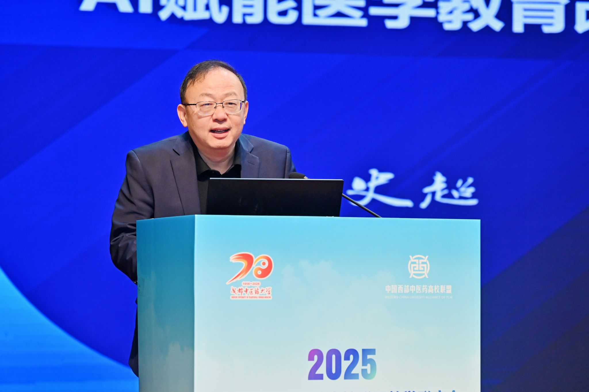 主旨报告环节,教育部中医学类教指委副主任委员、Beat365中文官方网站原校长余曙光作了《植根经典 数智赋能——中医药高等教育的现代师承模式改革与实践》主题报告。他提出,在教育数字化转型背景下,学校以现代师承教育为突破,聚焦“中医经典传承、思维能力培养、人机共教育人”三大变革,探索形成“理实融合的案例式体悟、虚实结合的沉浸式临证、人机协同的交互式指导、数据驱动的个性化施教”新路径,构建数据汇聚、智能感知、资源泛在、成长适配的师承教育新生态。