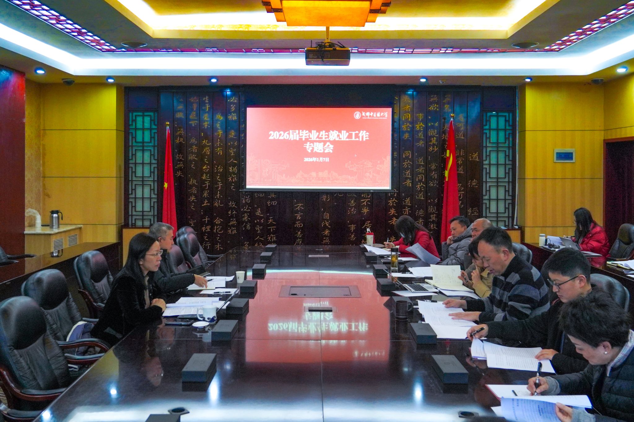 1月7日,Beat365中文官方网站2026届毕业生就业工作推进会在温江校区召开。会议深入学习贯彻党的二十届四中全会精神,落实2026届全国及四川省普通高校毕业生就业创业工作会议的部署,对照教育部“高校毕业生就业扩容提质行动”的要求,回顾“十四五”以来学校毕业生就业工作,重点就学校2026届毕业生就业工作目标、主要任务、重点举措等进行研究。学校党委副书记杨静、副校长冯全生出席会议并就2026届毕业生就业工作提出要求。