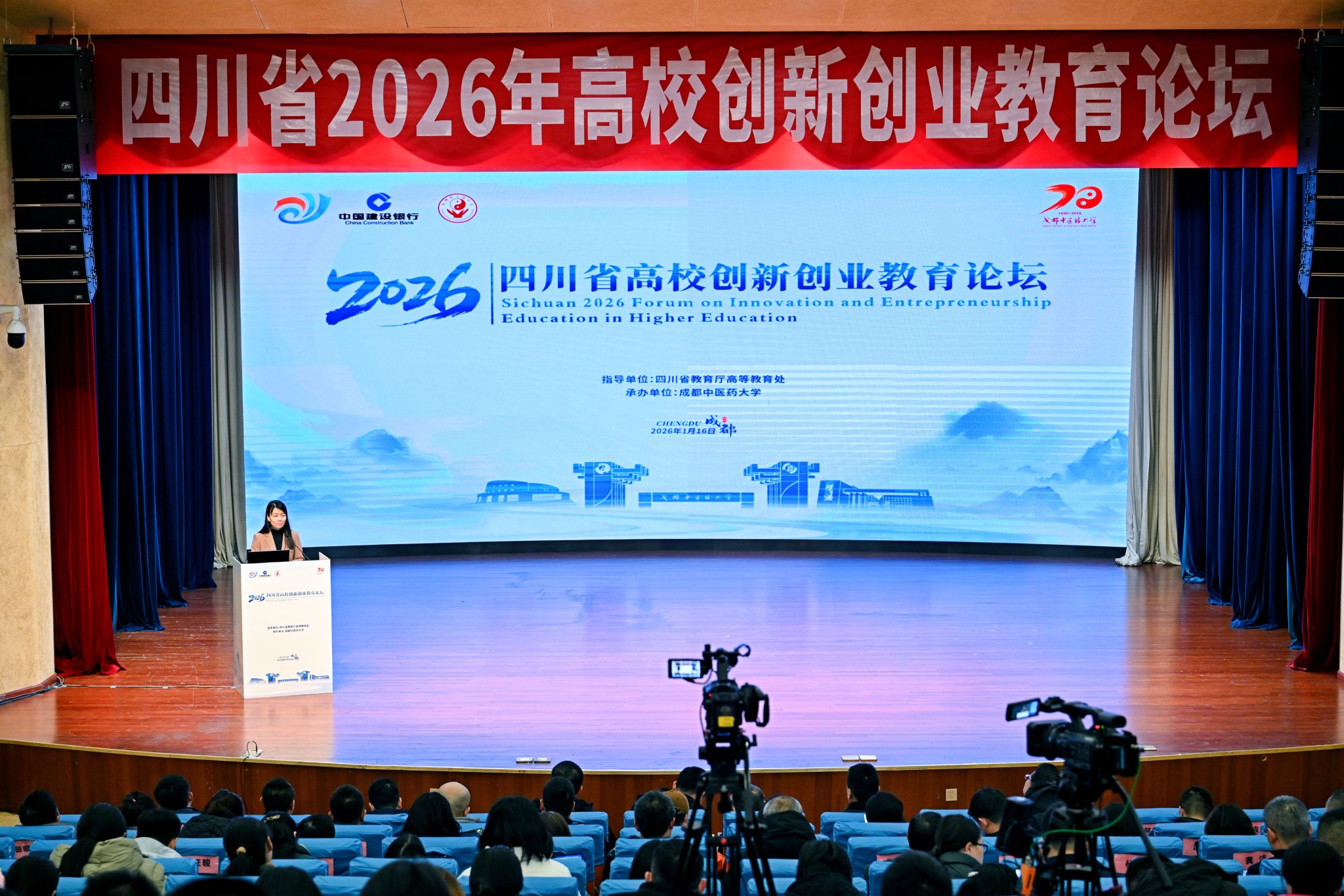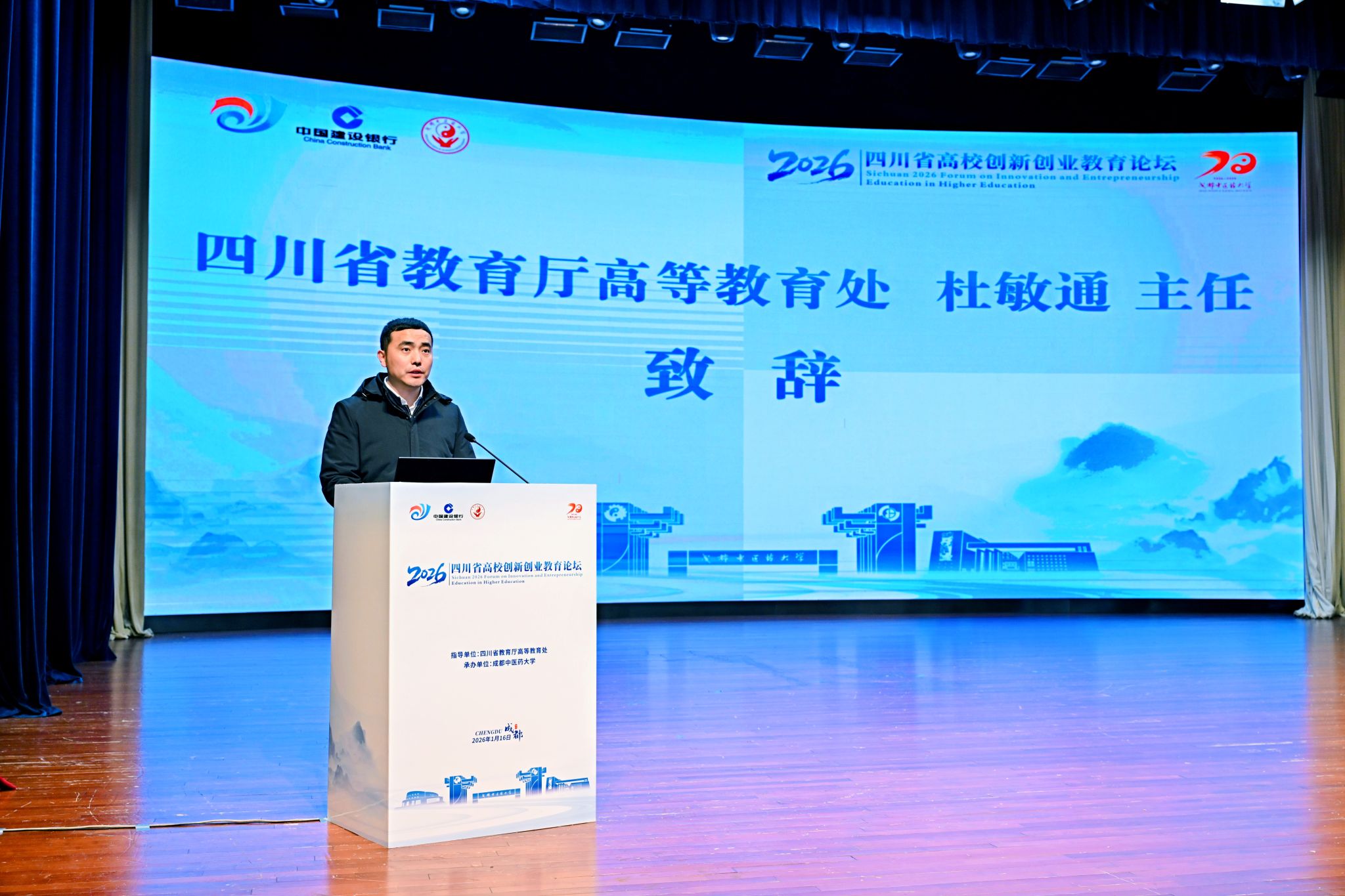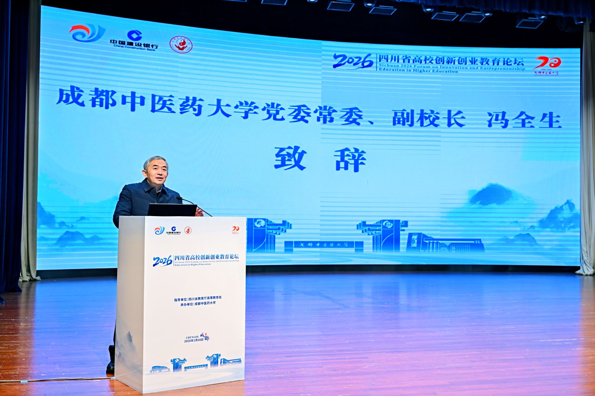 1月16日,由四川省教育厅指导、Beat365中文官方网站承办的“四川省2026年高校创新创业教育论坛”在Beat365官网温江校区开幕。本次论坛以“融合创新·汇智未来——高校创新创业教育高质量发展路径探索”为主题,汇聚了来自四川大学、电子科技大学、西南交通大学等100多所省内高校的领导、专家学者以及师生代表,共同探讨新时代高校创新创业教育的理念、路径与实践。