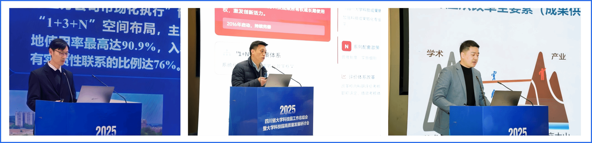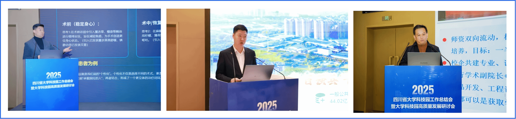 “大学科技园高质量发展研讨会”环节,与会嘉宾围绕大学科技园发展相关议题展开了深度交流。西南科技大学国家大学科技园总经理张丁杰分享了新时期园区高质量发展的思考与实践;四川大学国家大学科技园总经理龙毅介绍了在概念验证与科创服务体系建设方面的探索;四川省产业技术研究院转化公司总经理助理王震则重点推介了以“先投后股”为特色的成果转化新型模式,为破解早期项目融资难题提供了创新思路。