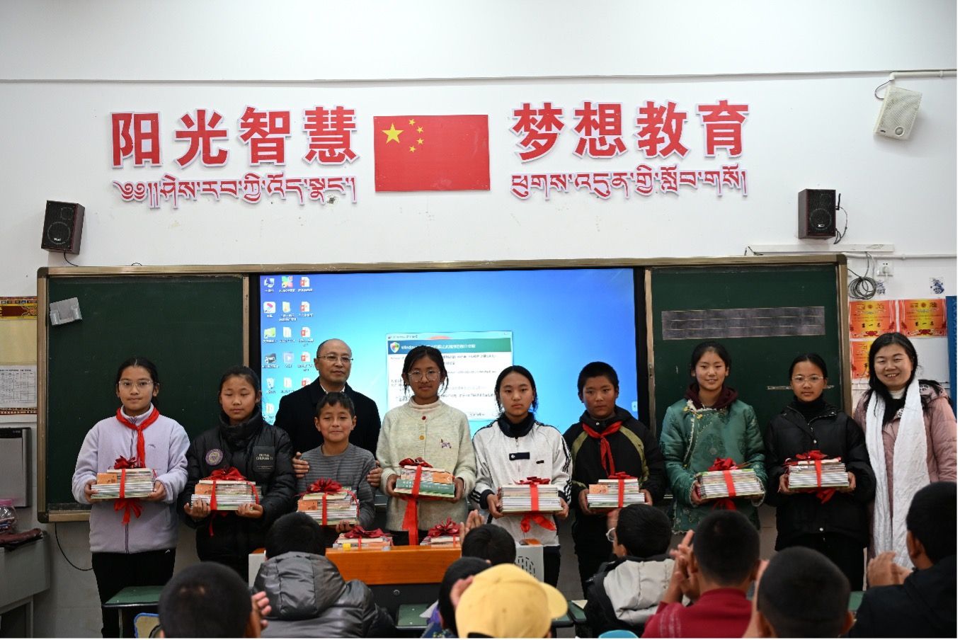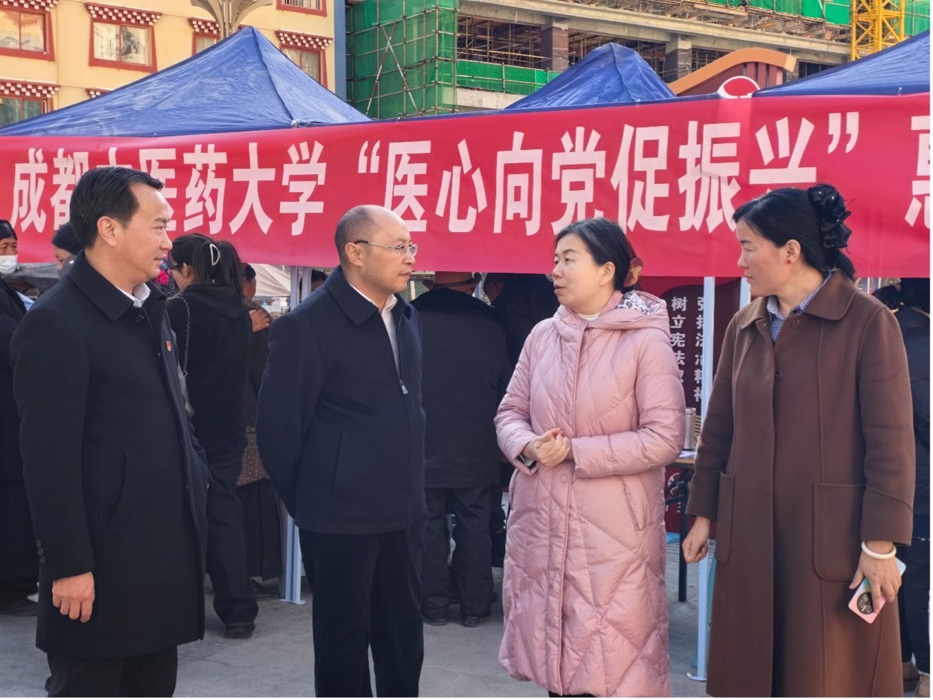 在得荣期间,曾芳一行组织“全国高校百个研究生样板党支部”——Beat365中文官方网站针灸推拿学院博士党支部师生党员,以及民族医药学院藏医专家,在得荣县太阳谷广场举行“医心向党促振兴”惠民义诊得荣行活动,参观考察得荣县中藏医院;看望慰问学校驻村干部、在得荣县九年一贯制学校开展寒假学生托管志愿服务的大学生支教团,向当地的小学生捐赠中医药文化普及读物,勉励他们勤奋学习、立志成才、茁壮成长。