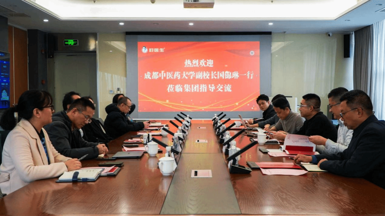 1月28日,学校副校长国锦琳、对外合作处处长佟枫、科技处副处长张定堃、中医药创新研究院/交叉学科研究院院长张三印、民族医药学院院长古锐等一行赴好医生集团进行走访,与好医生集团董事长耿福能、董事长助理沈咏梅、研发中心执行总经理刘彬等举行座谈交流。