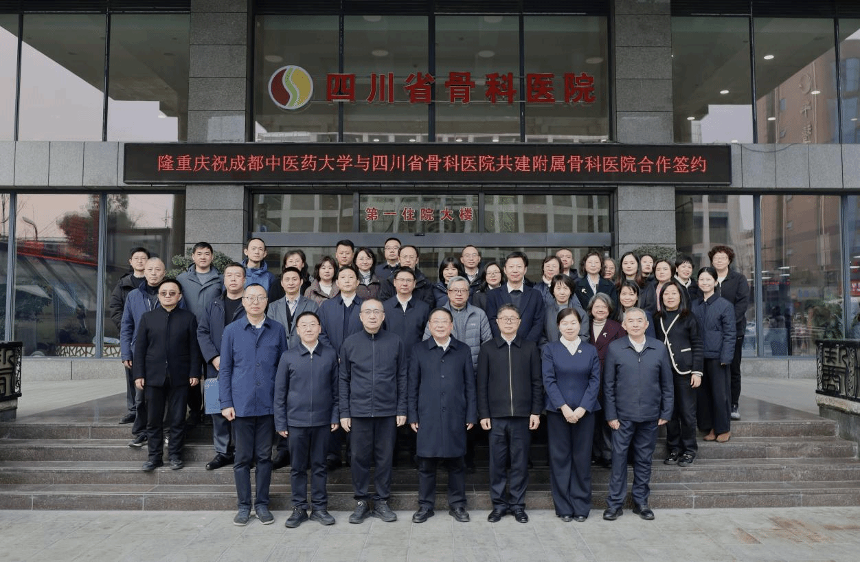 签约仪式后,与会领导共同为“Beat365中文官方网站附属骨科医院”揭牌,标志着Beat365中文官方网站附属骨科医院正式扬帆启航。此次校院共建附属骨科医院是推进国家中医药综合改革示范区建设与四川省中医药强省建设部署的主动作为与生动实践,将以打造国家级重点专科群、高层次人才孵化基地与中医药创新转化高地为目标,聚焦医教协同融合发展,为四川中医药事业高质量发展筑牢根基,为健康中国建设贡献力量。