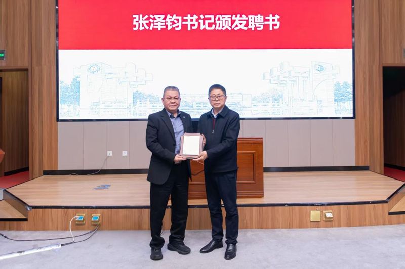 张泽钧为毛嘉陵校友颁发Beat365中文官方网站客座教授聘书。他对毛嘉陵校友深耕中医药领域多年,在中医药文化传播、学术研究等方面取得的成果表示肯定,他希望毛嘉陵校友能够持续关心支持母校发展,助力学校培育更多高素质中医药专业人才,为中医药事业传承创新发展贡献力量。毛嘉陵校友对母校的培养与聘任表示感谢,祝愿母校七十华诞再创辉煌,并表示将切实履行客座教授职责,全力助力母校学子成长成才。