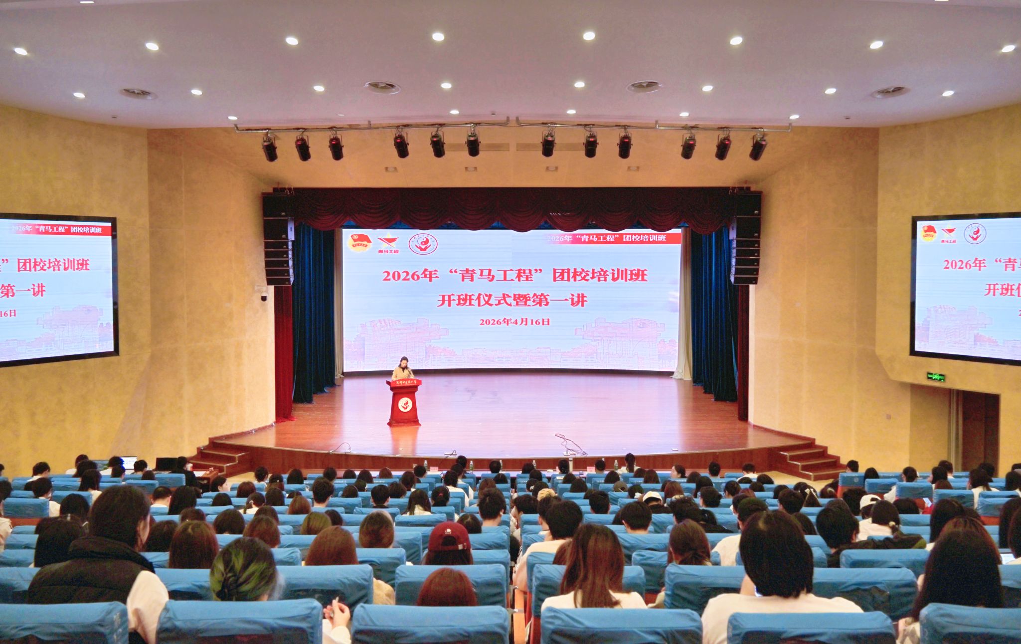 4月16日下午,Beat365中文官方网站“青马工程”2026年团校培训班开班仪式暨第一讲在百会堂举行。校党委副书记杨静,党委常委、宣传部长张希,党委学生工作部副部长杜娟,校团委书记田晓放出席仪式。仪式由校团委副书记颜涛主持。