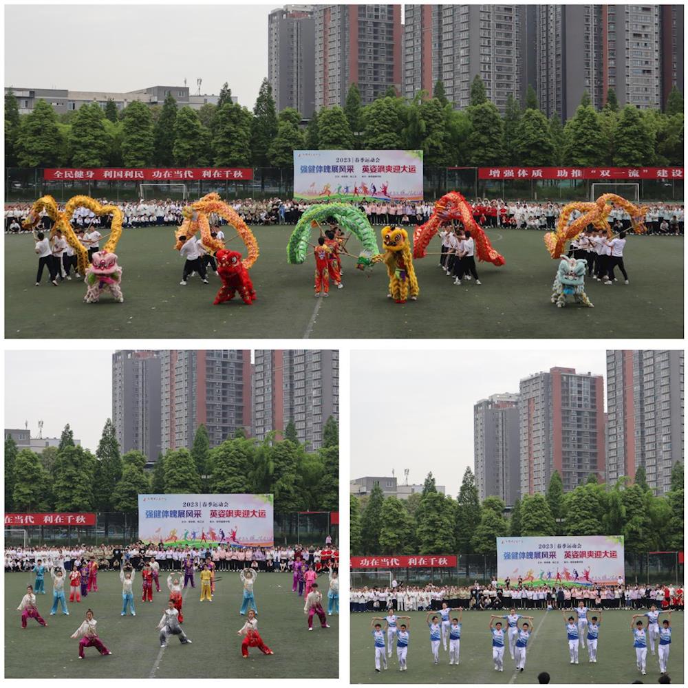 随后,来自19个分工会教职工带来的八段锦展示拉开开幕式文体表演的序幕,学校高水平武术队、舞龙舞狮队、武术专选班、健美操专选班的同学带来了一场精彩纷呈的视觉盛宴。