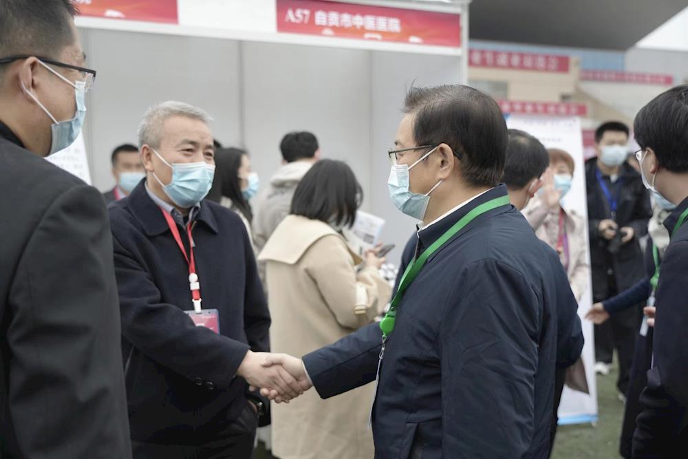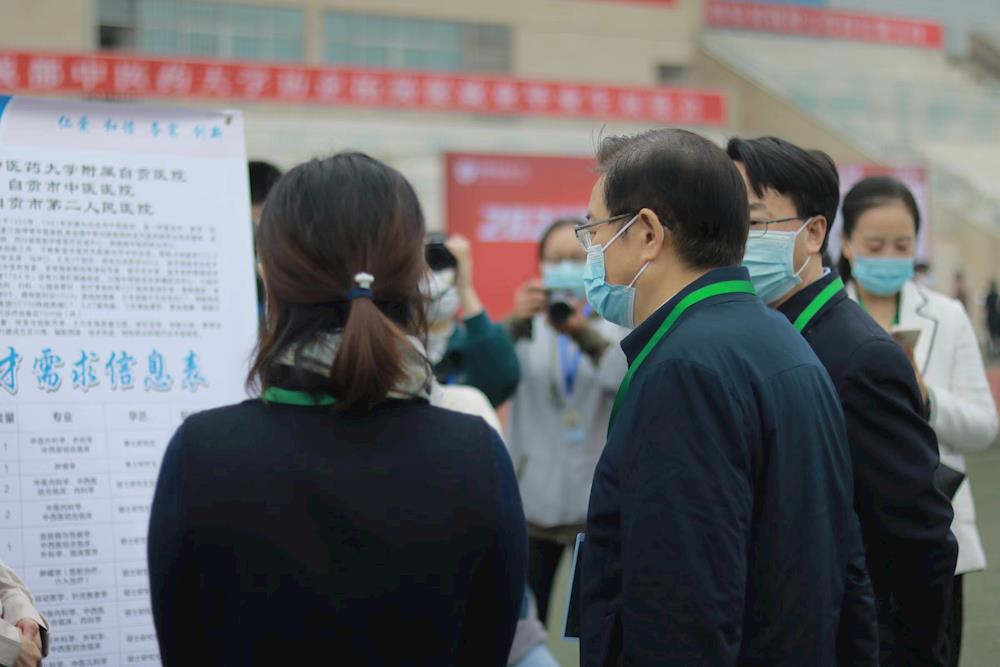 双选会上用人单位求贤若渴,纷纷打出“招贤纳士”广告,开展宣讲动员。各地方政府部门和用人单位“组团”招聘仍然是会场的一大亮点,绵阳市委组织部、巴中市委组织部、蒲江县卫健局、夹江县卫生健康局等组织下属各单位团体参会,通江县组织部、卫健局更是打出“带编招聘“的抢眼横幅,成都市人才交流中心、彭州市人才交流中心组织区域内知名医药、生物、食品企业集体报名,积极对接学校开展校地合作,下午各组团招聘方还将进一步开展笔试、面试等工作。
