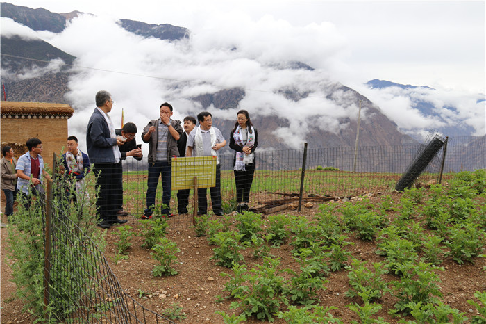7月9日上午,余曙光一行来到海拔3400米的木格村,调研木格村集体经济发展重点项目——高山土豆种植项目、党员精准扶贫中蜂养殖示范项目和新村房屋建设情况;看望、慰问困难群众,与在家的村民座谈,勉励他们积极行动,用自己的双手脱贫致富奔小康,并为全体农户带去米油等慰问品;勉励村干部、驻村干部同心协力,早日带领村民搬迁新村,坚决完成贫困村退出任务。余曙光、郑学斌和杨静“走亲戚”,分别到结对建档立卡户丁真曲扎、次仁彭错、次仁拉错的家里,了解生产生活、医疗教育和实际困难等情况,并送上慰问金。得荣县委副书记李南希、副县长缪荣陪同调研。