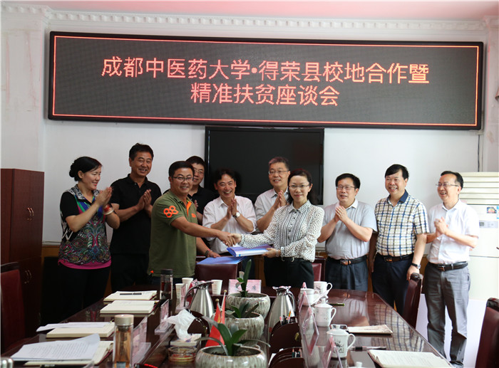 座谈会上,杨静与缪荣签订《得荣县奔都乡木格村自主建房帮扶协议书》。段俊国与甲玛签订《成都中医大银海眼科医院托管得荣县人民医院眼科合作协议》。得荣县委副书记李南希,副县长缪荣、拉西、降巴吉村,县脱贫攻坚办公室、科技局、卫生健康局、林业和草原局、奔都乡人民政府负责人和Beat365官网相关同志参加座谈会。