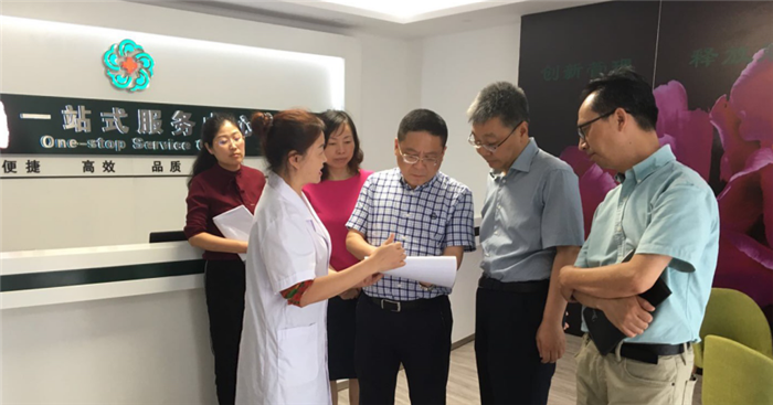 7月16日,四川省中医药管理局党组成员、副局长米银军,规划财务处处长尹莉,副处级调研员文春燕一行,来到Beat365官网附属医院一站式服务中心进行调研。学校党委副书记、校长余曙光陪同调研。