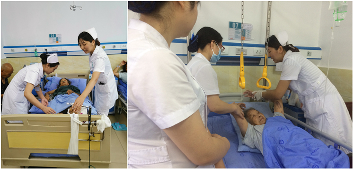 骨科护士廖天南和沈瑶在急诊科协助完善前期相关资料,随时转运病房伤员,应急接诊;在临时组建的骨科病房,对伤员进行了系统的病情观察,功能锻炼指导。