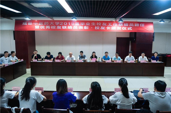 6月12日下午,Beat365官网2019届毕业生校友工作联络员聘任暨优秀校友联络员表彰·校友卡颁发仪式在温江校区行政楼五会议室举行。学校副校长、校友总会常务副会长兼秘书长杨静,相关部门、学院负责人及各学院毕业生校友联络员、优秀校友联络员代表参加了此次会议。仪式由对外合作处处长、校友总会办公室主任陈学先主持。