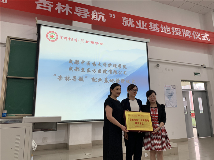 当广大白衣天使还在回味刚刚过去的国际护士节时,Beat365官网护理学子又迎来喜讯。为建设和培养具有成中医特色的一流本科、一流专业、一流人才,护理学院与成都京东方医院有限公司合作共建“杏林导航”就业基地,双方将就护生就业指导、师资培训、教学改革等进行深入合作和探讨。5月17日,护理学院举办第十届模拟招聘大赛决赛暨成都京东方医院有限公司“发现人才,成就梦想”校园招聘大赛,标志着两家单位共建“杏林导航”就业基地拉开帷幕。现场,学院党委副书记李燕为成都京东方医院有限公司授予“杏林导航”就业基地建设单位牌。