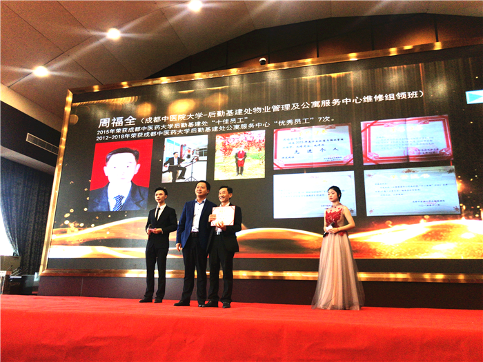 会议做了全省高校后勤协会寓专会2018年工作总结及2019年工作计划报告,审议了寓专会2018年财务报告,通报了4月12日在Beat365官网召开全省高校后勤工作推进会情况,表彰了2017-2018年度学生公寓与物业管理工作先进集体、先进个人,举行了第二届四川省高校十大“最美公寓人”颁奖典礼。后勤基建处职工周力军、翟鹤、杨德全获得“先进个人”荣誉称号。周福全被评为第二届四川省高校十大“最美公寓人”,并现场接受表彰和采访。