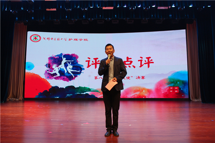 5月10日晚,护理学院第十五届“5.12”护士节开幕式暨第八届“魅力天使”决赛在百会堂演播厅成功举办。学校党委常委、副校长杨静,学院院长高静、党委书记侯朝铭,针灸推拿学院党委副书记佟枫,学院教师代表、辅导员以及400余名学生代表到场观看比赛。比赛评委由校学生处副处长黎奇、学院党委副书记李燕、校团委副书记刘婷婷、学院党政办主任杨小春、中医护理教研室主任梁清芳担任。