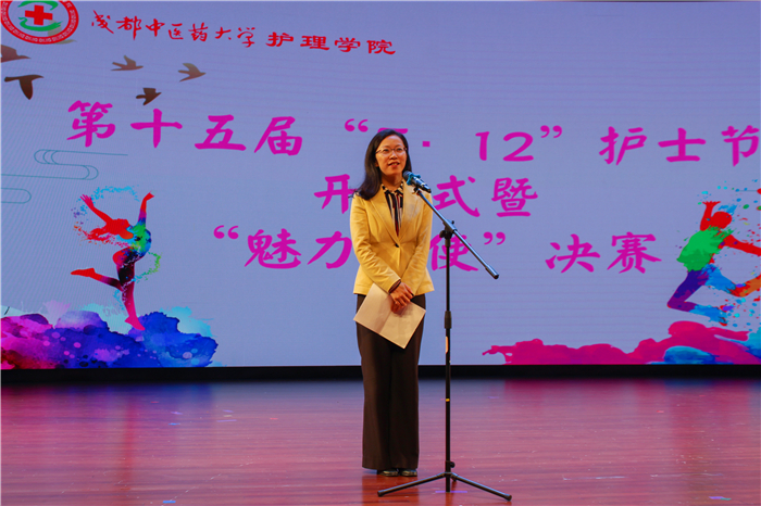 杨静致开幕词,护理学院作为学校重要的一只力量,在当下承载着建设具有成中医风格的一流护理本科的新使命,希望全院师生秉承“5.12”护士节南丁格尔的人道主义精神,拥抱新时代、奋进新时代;今年正值“五四”100周年,青年护生应勤学不辍、不负时代,弘扬奋进成中医、幸福成中医、美丽成中医、仁爱成中医的精神。