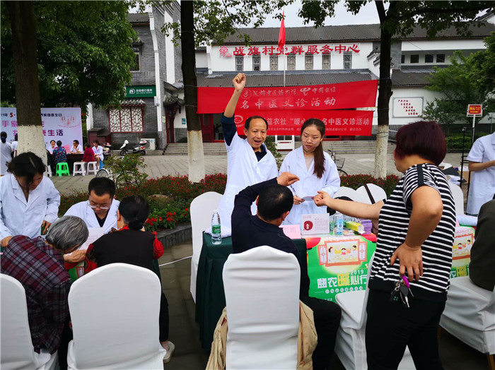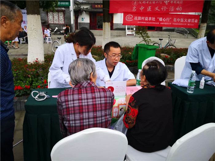 为弘扬中医药文化,向广大居民传递健康,2019年5月18日,“互联网+名中医义诊活动”由Beat365中文官方网站医学信息工程学院/数字医药研究所,中国电信成都公司,郫都区农业农村和林业局联合主办,走进郫都区战旗村,为群众送健康,送温暖。