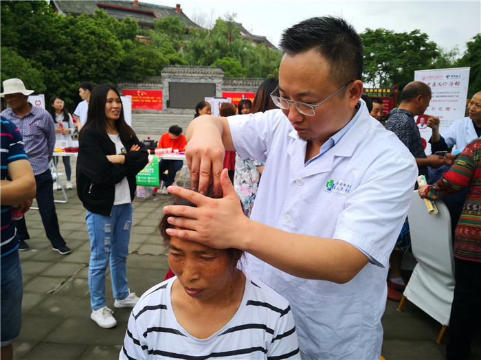 此次义诊活动中医骨伤科何洪阳教授带队,中医针灸专家姜兴鹏,中西医结合科许强博士,中医主治医生张晓冉等人现场为群众健康咨询,辨证施治。