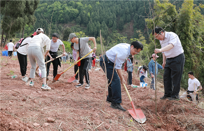 清明刚过,春阳照临,草木萌动。4月8日,为贯彻落实“四川省直机关、高校、企业、金融机构龙泉山城市森林公园‘包山头’植树履责活动动员大会精神,按照活动方案要求和省直工委工作安排,学校师生员工代表120余人来到龙泉驿区茶店镇的龙泉山深处进行履责义务植树劳动。党委书记刘毅,党委副书记、纪委书记、驻校纪检组组长郑学斌,副校长徐廉也来到植树点与师生员工一起劳动。