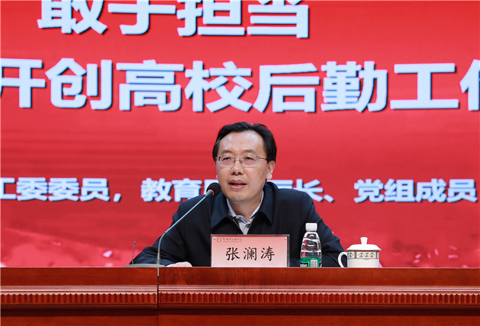 张澜涛在讲话中充分肯定全省高校后勤工作在2018年通过“九大转变”、“九大提升”和“九个坚持“,在真抓实干中取得的显著成效,同时指出高校还存在对后勤工作重视不够、后勤队伍建设还需加强、后勤基础设施比较薄弱、食品安全面临巨大挑战等短板和不足。他强调,要狠抓落实,通过五项措施推动高校推进高校后勤保障服务水平再上新台阶:一是全面加强党的建设,推动高校后勤全面从严治党再聚焦再发力;二是坚持立德树人根本任务,构建后勤育人长效机制;三是突出抓好学校食品安全管理,提升后勤安全保障能力;四是加快推动绿色校园建设,营造良好育人环境;五是统筹推进高质量发展,构建现代化后勤保障服务体系。他希望,全省高校主动作为、勇于担当、狠抓落实,全面开创高校后勤工作新局面。