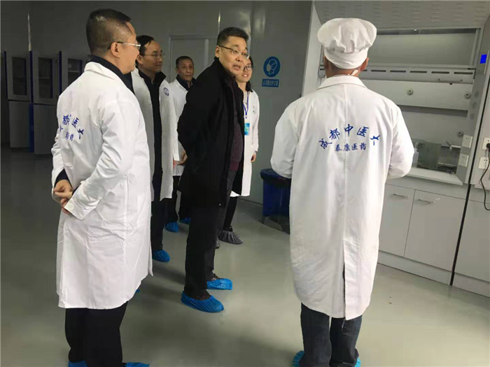一行人先后参观了饮片原药库、成品库、天平室、中心理化室、精密仪器等区域,仔细了解了生产现场的工艺流程和设备状况、饮片检验的各项数据要求及检验设备具体使用情况。