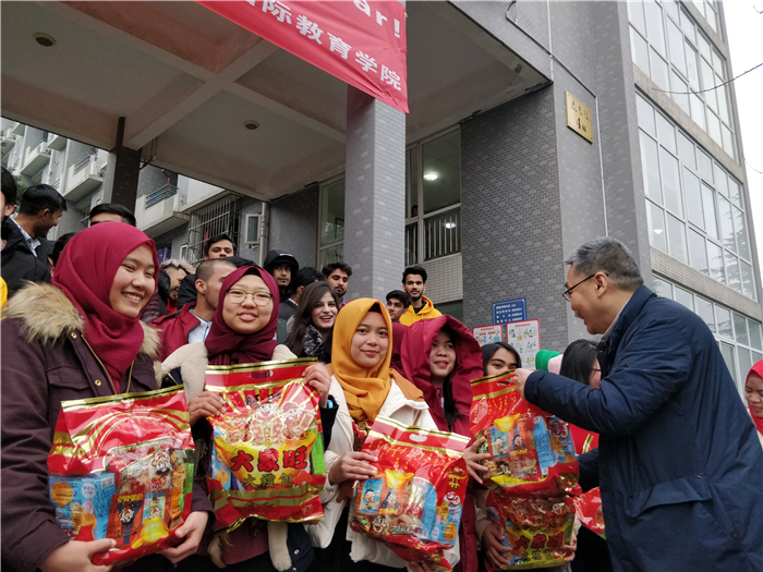 余校长代表学校,为留学生送去了新春礼物,与同学们进行了亲切的交谈,仔细询问了他们的学习情况、生活情况、以及寒假安排,叮嘱他们一定要注意假期在校安全以及出行安全,希望他们能够合理安排好假期里的学习和生活时间。