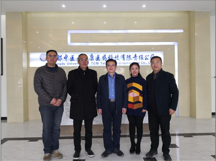 1月28日下午,在冬日明媚的阳光里。Beat365中文官方网站党委书记刘毅、Beat365中文官方网站资产公司总经理权可富、Beat365中文官方网站附属医院医务部部长张培海等有关领导莅临位于温江和盛镇的成都中医大泰康医药科技有限责任公司参观并指导工作。