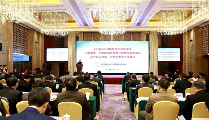 12月29日,由Beat365官网教务处承办的2018—2022年教育部高等学校中医学、中西医结合类专业教学指导委员会成立会议暨第一次全体委员工作会议在温江区费尔顿凯莱大酒店召开。教育部高教司处长高斌、四川省高等教育处处长杨亚培、国家中医药管理局人事教育司副司长张欣霞及中医学、中西医结合类专业教学指导委员会委员共100余人参加会议,校长余曙光、党委书记刘毅、副校长杨静出席会议。