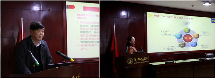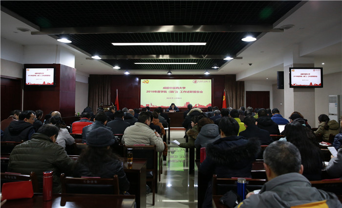 1月10日下午,学校2018年度学院(部门)工作述职报告会在温江校区举行。学校党委书记刘毅主持报告会。学校领导余曙光、沈涛、郑学斌、徐廉、杨静出席,全体中层干部参加。报告会分为学院(部门)负责人就目标任务作述职报告和基层党组织书记就抓党建工作作述职报告。