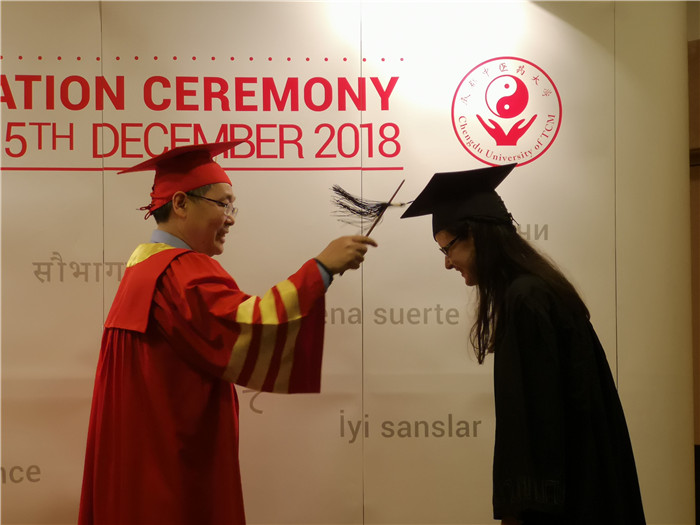 15日下午,宝德分校举行2012级和2013级毕业典礼,余曙光作为Beat365中文官方网站学位委员会主席,为中医学专业(五年制)毕业生拨穗,蔡宝德为毕业生颁发毕业证书和学位证书。