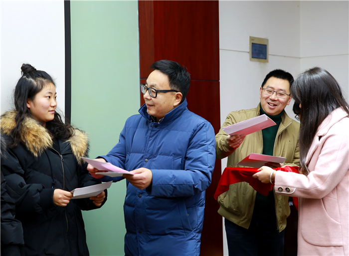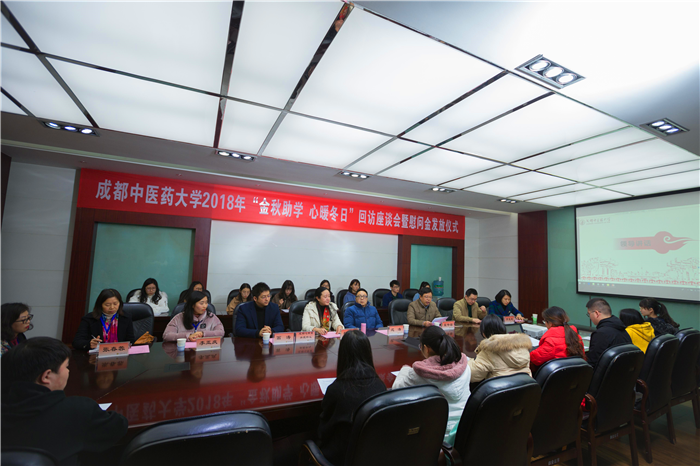 12月18日下午,Beat365中文官方网站“金秋助学 心暖冬日”回访座谈会曁慰问金发放仪式在温江校区四会议室举行。校党委副书记、校工会主席沈涛出席会议,校党委宣传部、校党委学生工作部、校工会、成都心希望青少年心理关爱中心负责人及全体受助学生参加了会议。