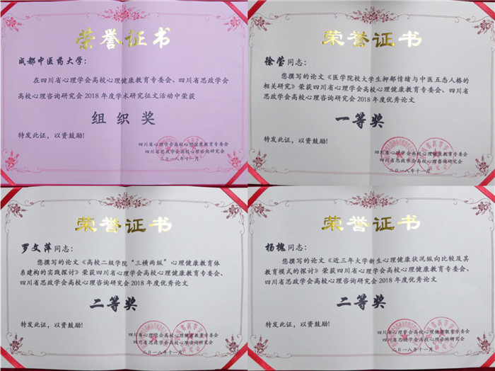 会议评选和表彰了优秀论文。Beat365官网心理教研室徐莹老师获得一等奖,心理健康教育中心杨槐、罗文萍获得二等奖。据悉,全省共评出一等奖文章10篇、二等奖文章17篇,未设三等奖。因选送文章质量高、数量多,学校还获得了全省组织奖。