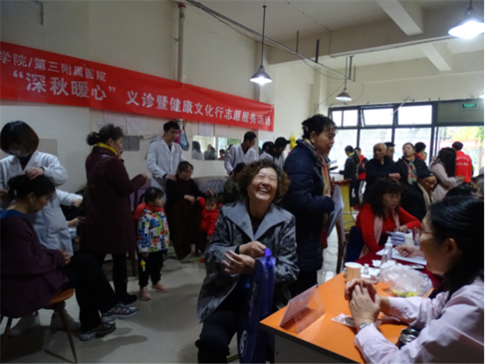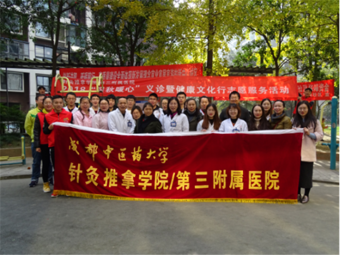 11月24日,针灸推拿学院/第三附属医院在金强大学城社区成功举行“深秋暖心”义诊暨健康文化行志愿服务活动。学院党委书记张俭,副书记佟枫带领学院/医院党员医生、老师和15名学生志愿者参加活动,服务群众百余人。